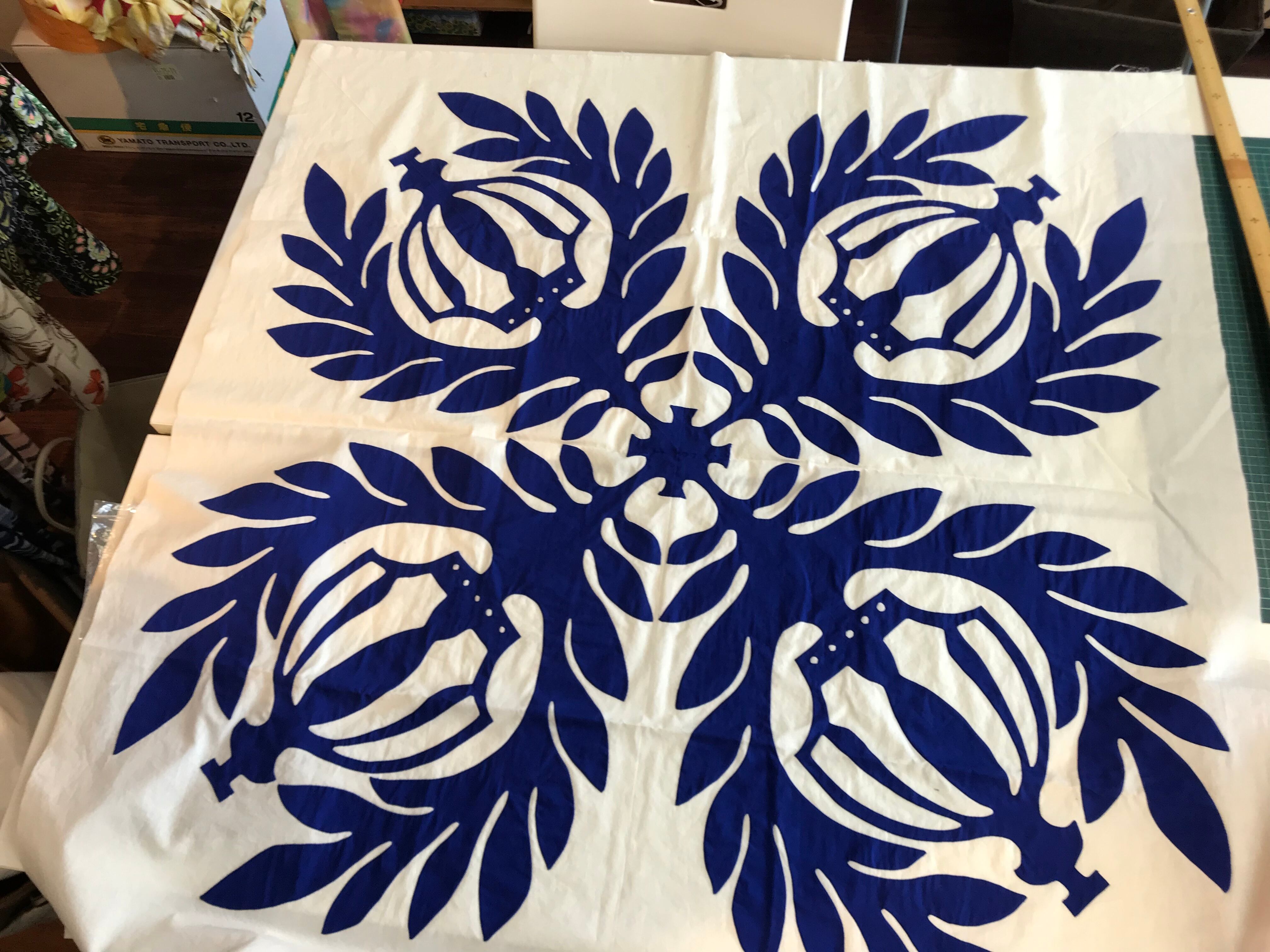 ※こちらのキルトデザインは、ハワイアンキルトクラブプアリリオリジナルデザインです。画像の無断転写、デザインのコピーの禁止、コピーしての販売を固く禁止します。